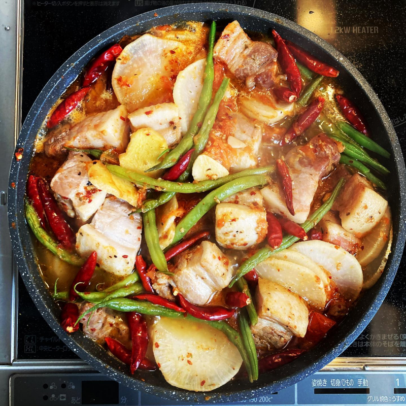 Phaksha Paa is a pork dish that is cooked with radish, chilies, and ginger. The pork is first marinated in a variety of spices and then slow-cooked with the vegetables. The result is a spicy and flavorful dish that is perfect for a cold day.