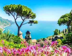 From Atrani it rises inwards along 7.5 kilometers of curves. The high and strategic position of Ravello offers, according to many, the most beautiful panorama of Italy, the one at the end of the garden of Villa Cimbrone, the Terrace of Infinity, built at the most protruding point of the country.